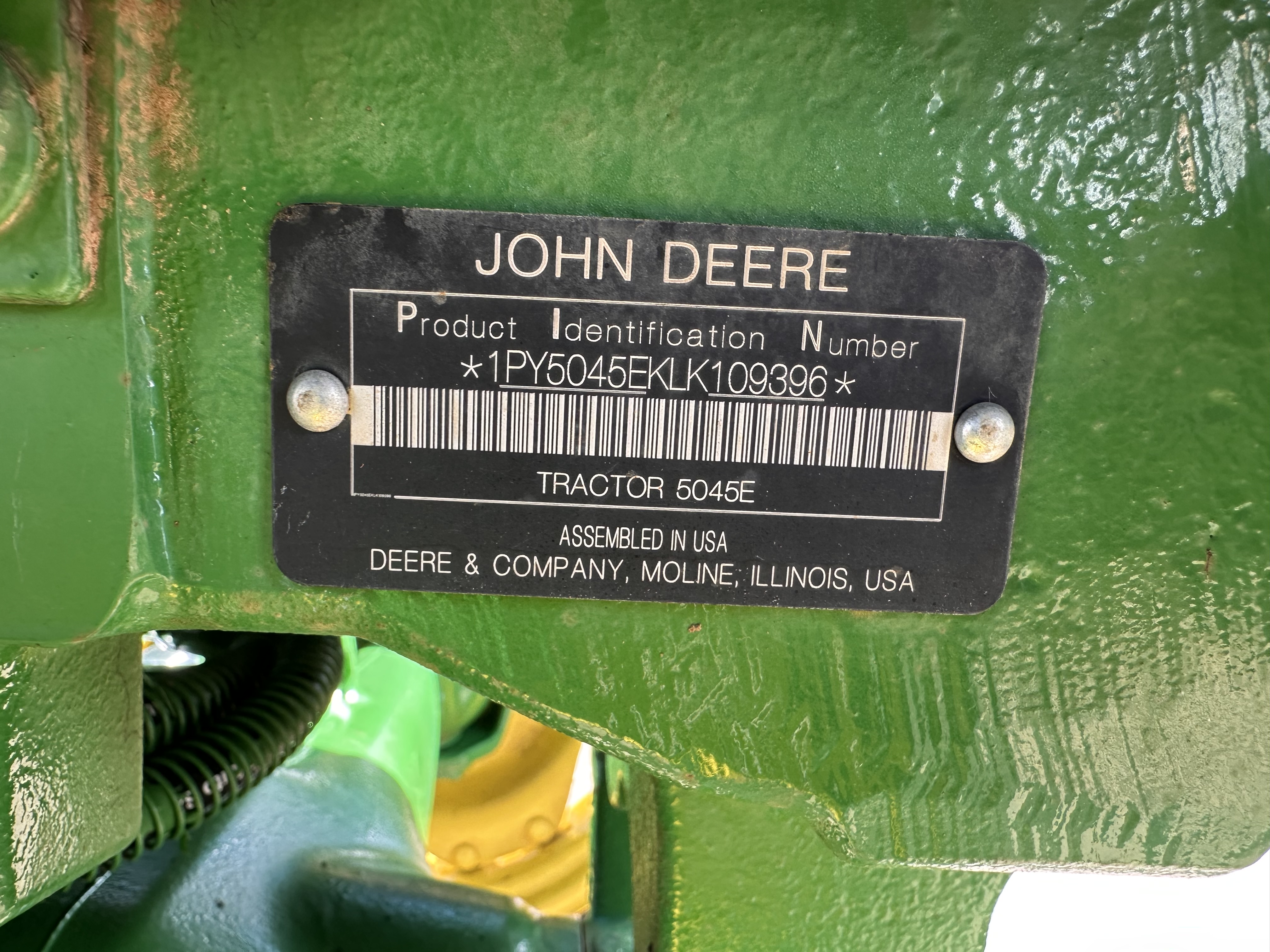 2020 John Deere 5045E with 843 Hours Bought new 12-10-2020 One owner 45HP 4x4 1 set of rear remotes Quick attach front bucket Suspension seat 540 PTO Absolutely no problems or leaks! Seat has a few tears on it (picture provided) and the right front tire has a little more wear than the left.